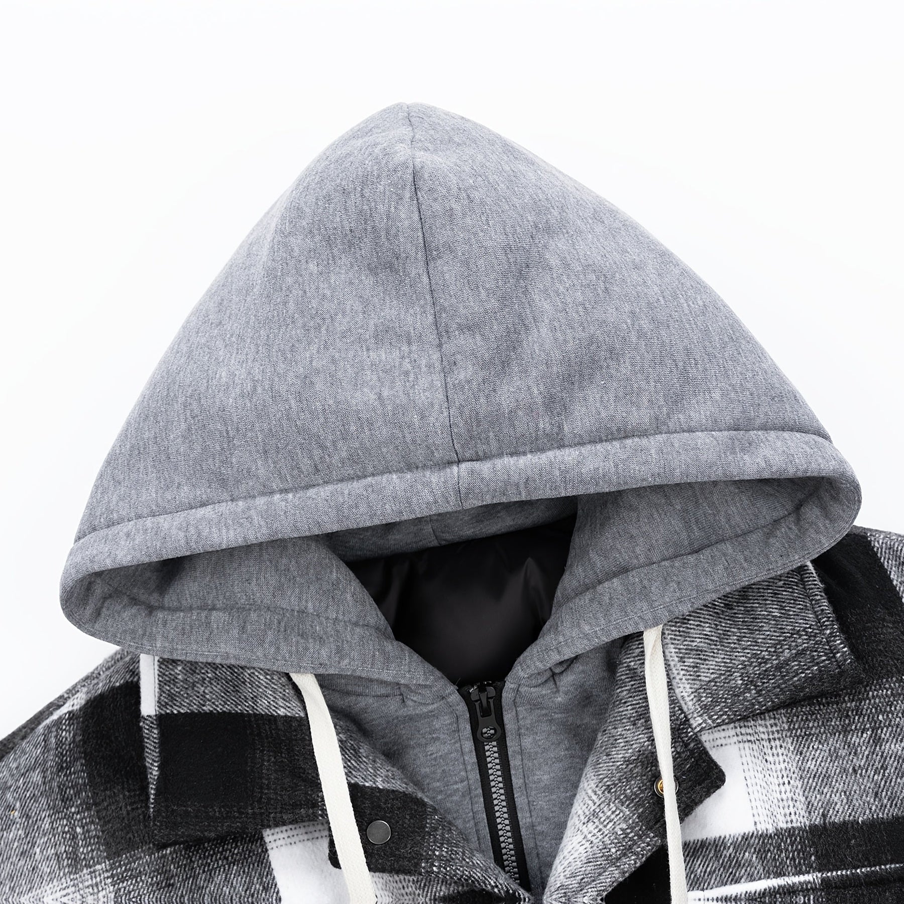 Plaid overlay design with a gray hood delivers that in one jacket. Cotton filled insulation and a relaxed fit add warmth for everyday cold weather wear.